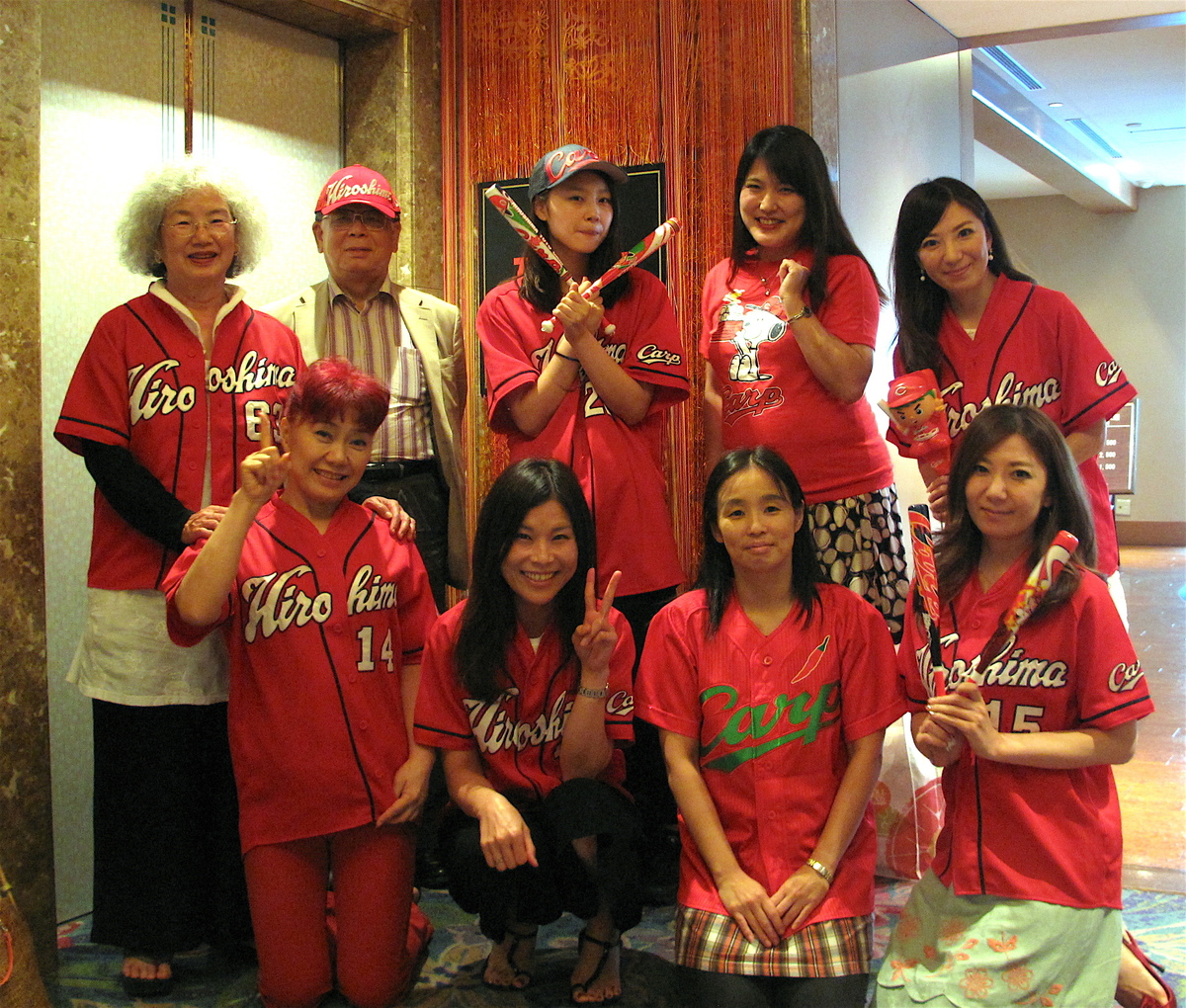 カープ女子座談会に参加してくださった皆さんと、東京広島県人会の松島輝男さんご夫妻