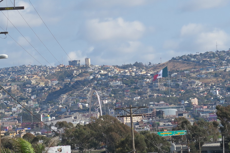 炎天下国境の陸橋を歩いて渡ってアメリカ側からメキシコへ入る。どちらもフリーパスであり一切審査なし。両替屋が並んでいるがかなりレートに差がある。10軒くらいチェックしてから30ドルほど両替した。