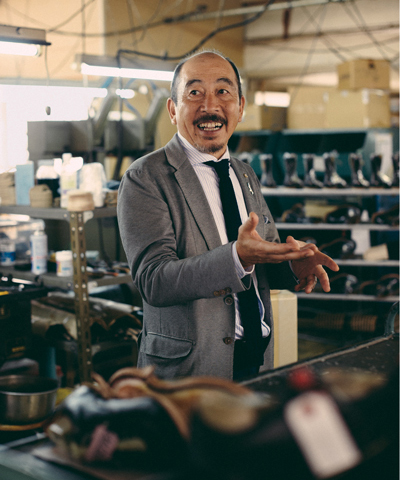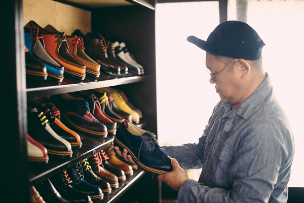 社長室に飾られていた高橋さんが提案するカラフルなコレクションに思わず手が出る靴好きな筆者