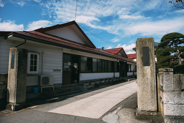 宮城興業の門前から見える三角屋根の工場。冬場の雪かきは大仕事