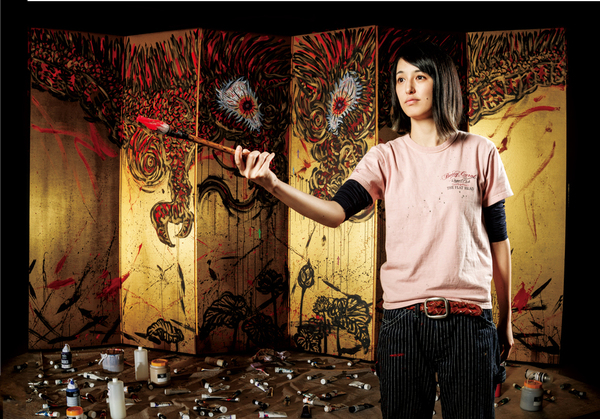 • 作品「エネルギー阿」(右)、「エネルギー吽」  2017年 アクリル、金箔ほか