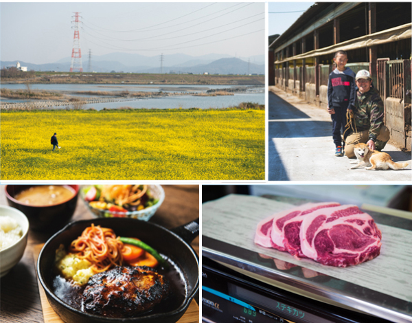 (写真上左)取材時の3月は菜の花の盛り。川は吉野川