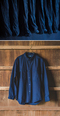 (写真下)欧州のワークシャツをベースにした身幅をたっぷりとったオリジナルシャツ。着込んで天然藍の色落ちを楽しめる。税別38,000円