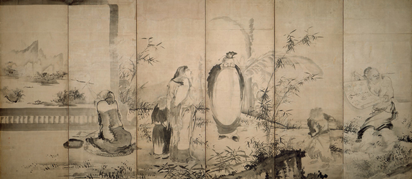 • 曾我蕭白《琴棋書画図》 左隻(修復前) 江戸時代