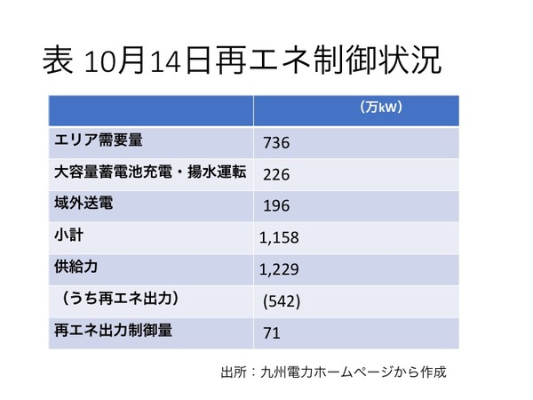 出力制御の九州での再エネ導入、やがて停電を招く可能性も