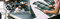 (写真左)専用の機械を巧みに操り「延反」を黙々と行う川北社長 右:裁断したカットソーのパターン(写真右)(型)の柄合わせをするデザインチーム。デザインだけでなく、パターンや生地の企画など、クリエイティブ全般を行う