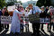 • ムハンマド皇太子とトランプ大統領の仮装をしてホワイトハウス前でカショギ氏殺害を抗議する人々(REUTERS/AFLO)