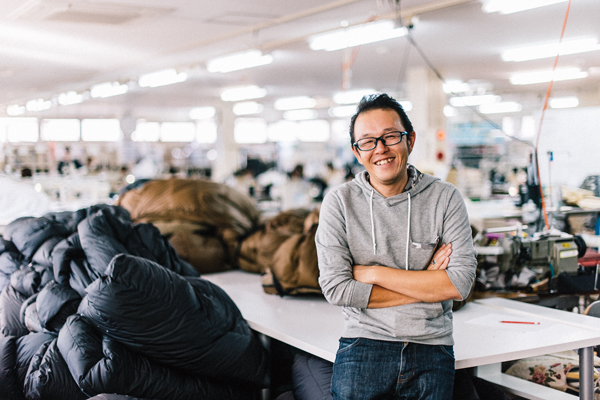 (写真左)羽毛価格の高騰、海外からの実習生の育成、生産体制の強化など課題は多いながらも、メイドイン滋賀ダウンブランドとして知名度も高まり、今シーズンは工場も社員もフル稼働