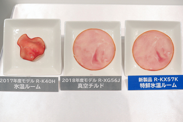• ノーラップ保存のハム。通常冷蔵だと干からびてしまうが、チルド下ではほぼ入れた状態で保存される。