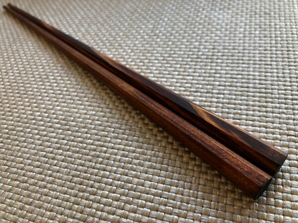 石川県・輪島の職人さんからいただいた、拭き漆のお箸を菜箸として使わせていただいている。拭き漆が油を弾いてくれるので使い勝手が良い。色味も暖かく、八角形で手馴染みも良いので手が喜ぶ(写真提供:筆者)