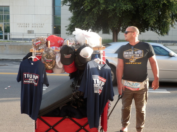 トランプグッズを販売する白人男性(海野撮影@フロリダ州オーランド)