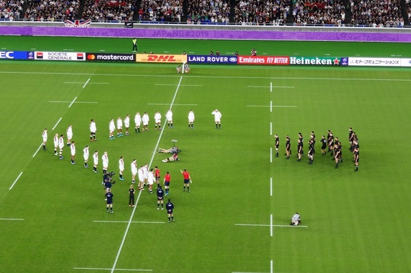 • オールブラックスのハカに「V字」で向き合ったイングランド(写真・筆者)