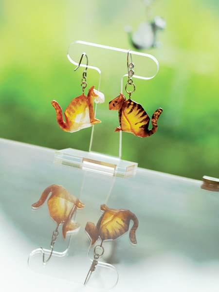 • 光を透過する軽やかな猫のピアス