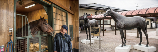 (写真左)日本軽種馬協会七戸種馬場にて。非公開のところを特別に見学させてもらいました