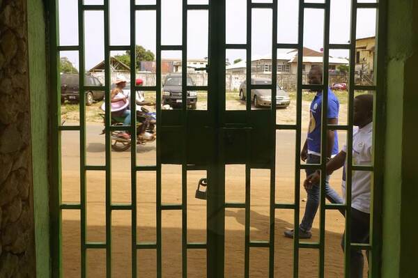 空港から直接連れて来られた検疫施設の廊下。エボラ出血熱の際にも使用されていたと思われる