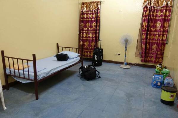 検疫施設の部屋。頻繁に起こる停電で扇風機が止まると即、蒸し風呂に