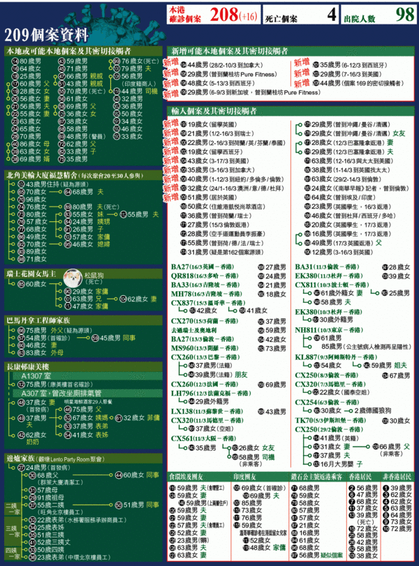 • 感染経路が分かりやすくビジュアル化された新聞紙面。左側中央の小さな円には亡くなった犬の写真まで入れる徹底ぶり(出所:蘋果日報)