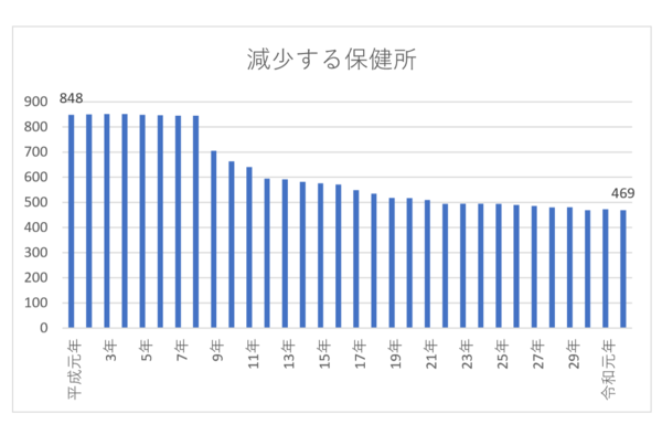• (「全国保健所長会HP」厚生労働省健康局健康課地域保健室調べ )