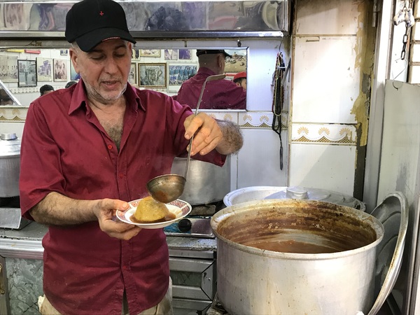 昼食に食べたクッバ。バグダッドのクッバはドーム型。ひき肉を小麦粉の厚い皮で包んでスープで煮た料理