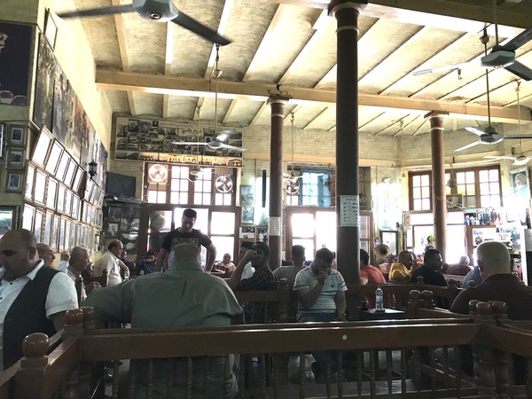 薄暗いお茶屋、シャバンデールは涼しく、ほっと一息させる雰囲気がある。お茶屋の主人は2007年の自動車爆弾で息子と孫を4人亡くしている。建物は昔、印刷工場だったそうだ