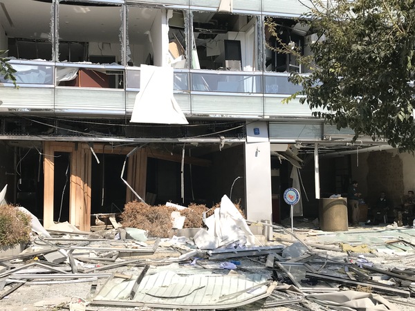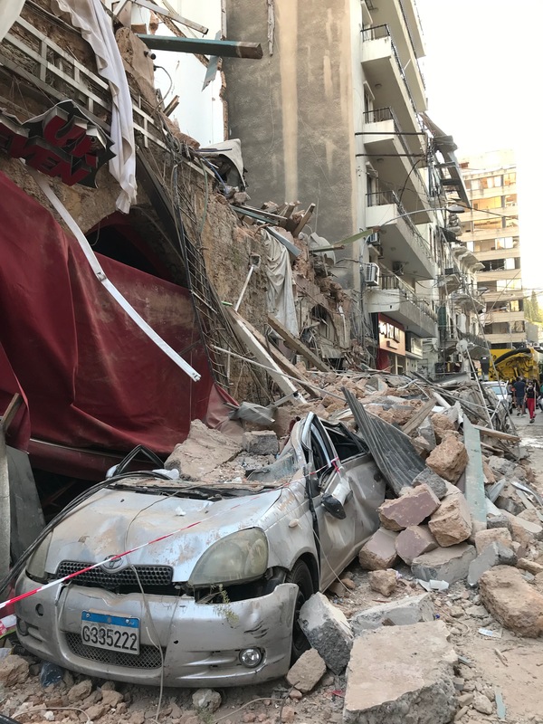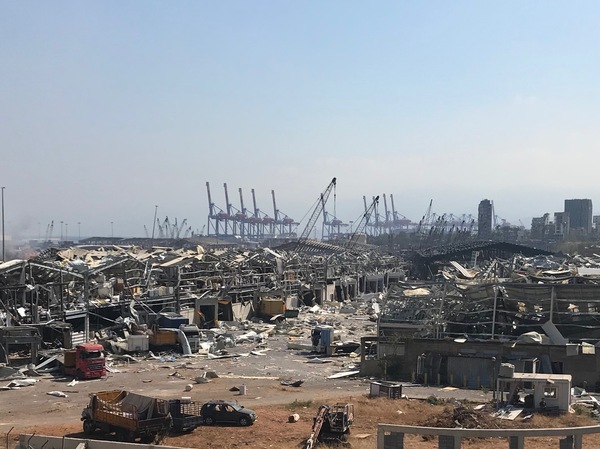 • 爆発のあったベイルート港と倉庫群(筆者撮影)
