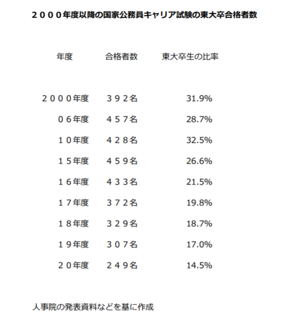 人気落ち込む官僚キャリア職、東大卒の合格者が300人を割り込む