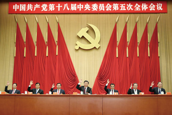 • 2015年の党中央委員会第5回全体会議で第13次5カ年計画が承認された (XINHUA NEWS AGENCY/AFLO)