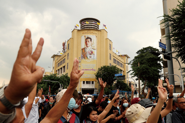 • タイの反体制運動は、タブーとされてきた現国王(中央)および王室への批判を展開するようになった (REUTERS/AFLO)