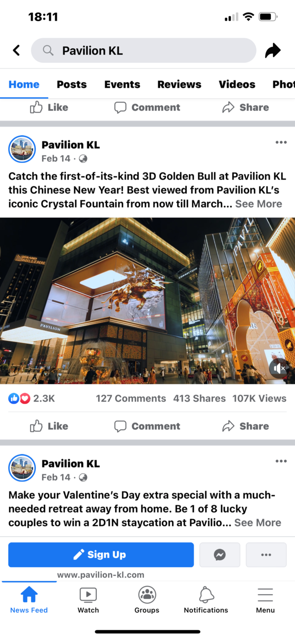 首都クアラルンプール中心部の高級ショッピングモールに設置された、春節を祝う巨大3D 広告。コロナ禍で連帯して苦難を乗り越えようというメッセージが込められた(パビリオン公式フェイスブックページより)
