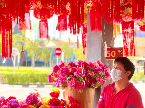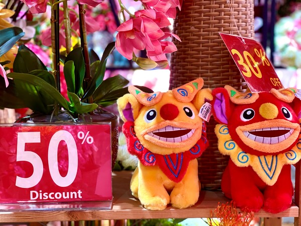 チャイナタウンの近くで中華系雑貨を販売する店を営む店主 今年は春節の飾り物がほとんど売れないとため息をついた ほぼ全ての商品に「50%ディスカウント」の張り紙が掲げられていた