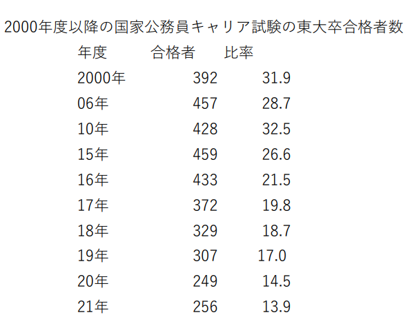 キャリア官僚志願者大幅減、東大卒合格者は下げ止まる