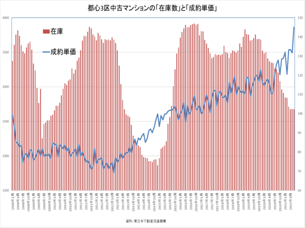 都心マンションが値上がり、成約価格が提示価格を上回る