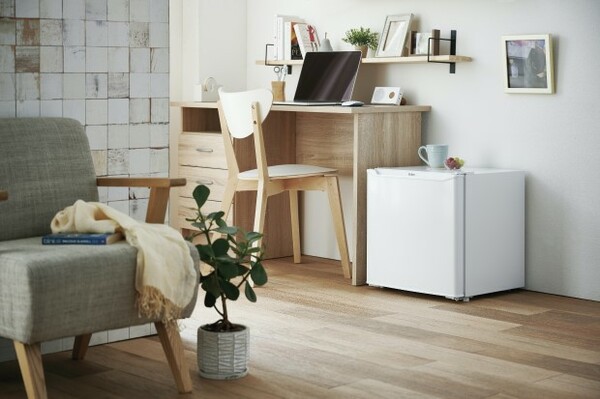 • 85L冷凍冷蔵庫「JR-N85D」は、デスクのすぐ脇に置ける大きさとなっている
