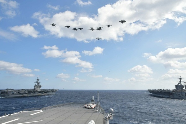 • 2022年1月に沖縄南方で行われた日米海軍による共同訓練。日米の連携強化が急務となっている(海上自衛隊/EYEPRESS/REX/アフロ)