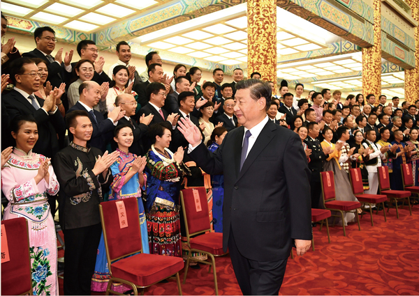 • 習近平主席は少数民族を前に笑顔を見せるが、心中穏やかではいられないだろう (XINHUA NEWS AGENCY/AFLO)