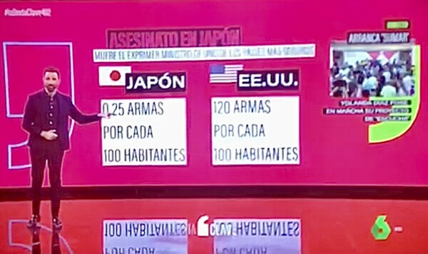 • ラ・セクスタ・クラベは、日本とアメリカの武器所持率を解説している(YOICHI MIYASHITA)