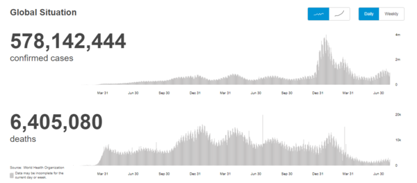 • 世界の感染推移(出所)WHO Coronavirus (COVID-19) Dashboard | WHO Coronavirus (COVID-19) Dashboard With Vaccination Data  写真を拡大