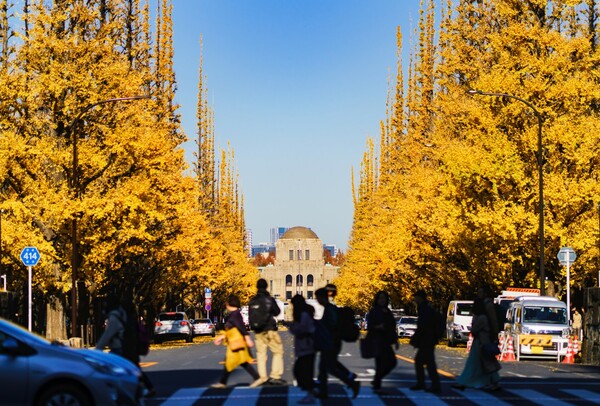 • 神宮外苑で人気の高いイチョウ並木。再開発の際の樹木の伐採が指摘されている(show999/gettyimages)