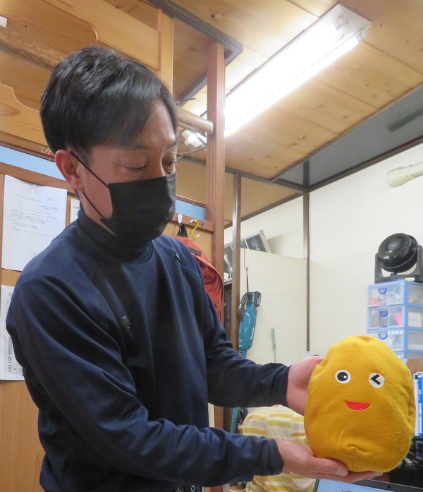 • 「お米くん」のぬいぐるみを使った出前授業を再現する古谷代表(筆者撮影)