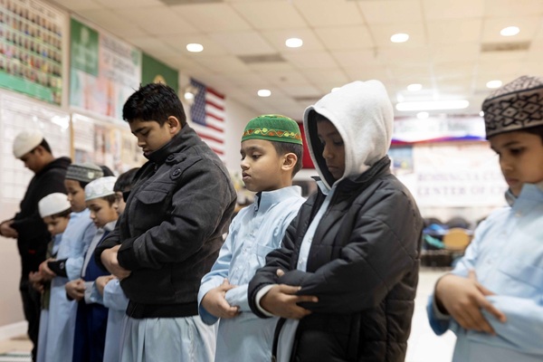 • 米国・シカゴのコミュニティセンターで礼拝をするロヒンギャの子どもたち (筆者撮影、以下同)