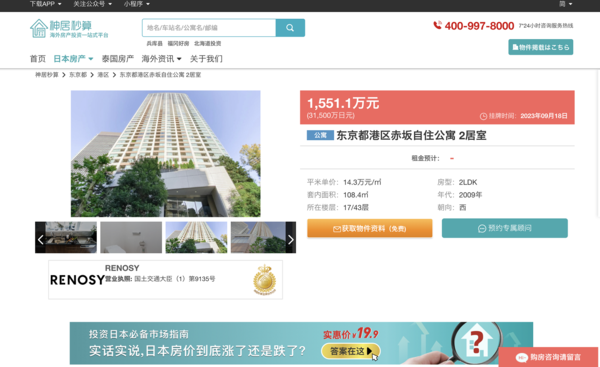 • 中国の富裕層の間で、日本の不動産は人気が高い(神居秒算のウェブサイトより、以下同)