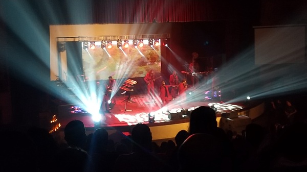 キャンディーの名門仏教系男子公立校の生徒会主催ロックコンサートのステージ
