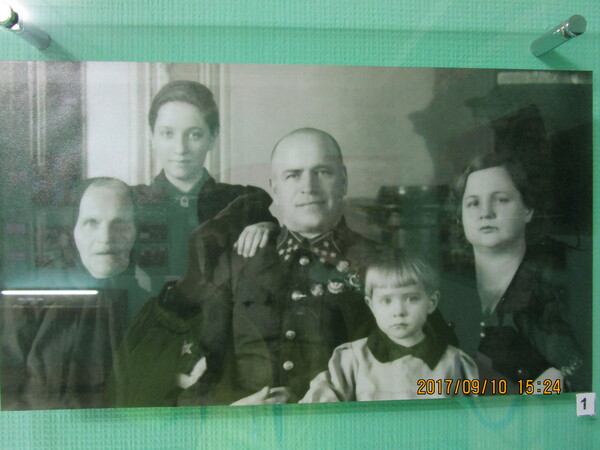 退役後のジューコフ将軍と家族の写真。救国の英雄ジューコフ将軍の戦術は 前線の赤軍兵士の後方に督戦部隊を配置して敗走しようとする赤軍兵士を脅してドイツ 軍に突撃させるという情け容赦のないものだった。ウクライナ戦争でもロシア軍は同様 の戦術を採用している。スターリンはジューコフ将軍に対する国民的人気を恐れて戦後 早々と将軍を退役させた
