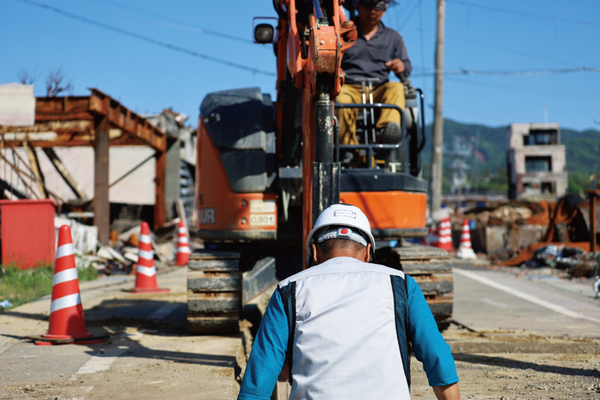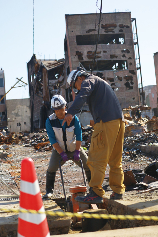 焼け野原になった輪島朝市の近くで行われていた水道管工事の様子。朝市通りでは6月5日に建物の公費解体が始まった(WEDGE以下同)