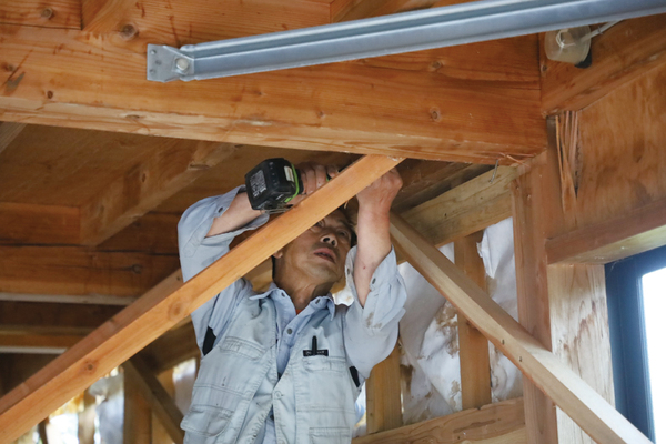 大工の谷内さんは日々倒壊家屋の修繕に駆け回る。「マグロと一緒で毎日動いていないと死んじゃいますよ」