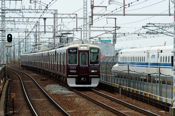 • 現在の阪急京都線水無瀬駅付近。新幹線がすぐとなりを走っている