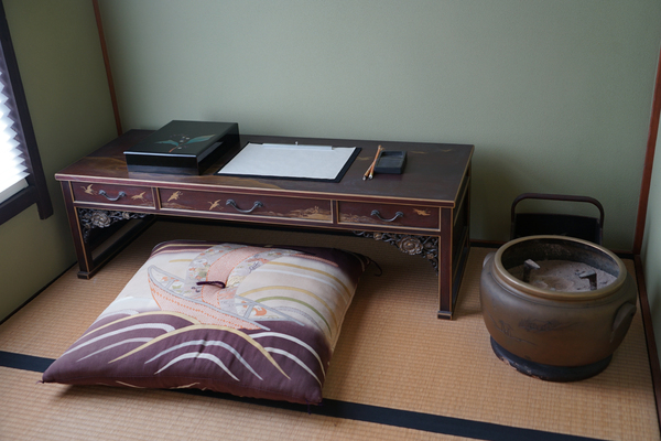 1階の絢爛さとは打って変わり、2階の居住空間は純和風の落ち着く空間だ。貞奴が愛用していた品や桃介の直筆の書などが飾られている