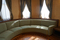 大広間に置かれた円形のソファは、当時のスプリングを再利用しており、当時の座り心地を体感できる