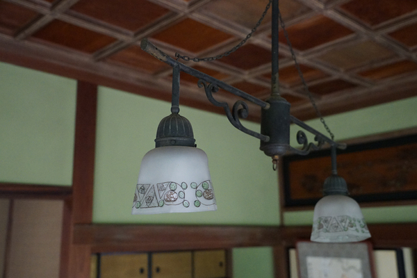 亀甲格子や精巧な彫刻が施された欄間、結霜ガラスの入った障子、洋風な照明など意匠がこらされている