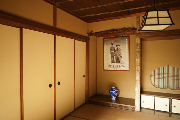 床の間に夫妻の半生を描いたドラマのポスターが飾られていた